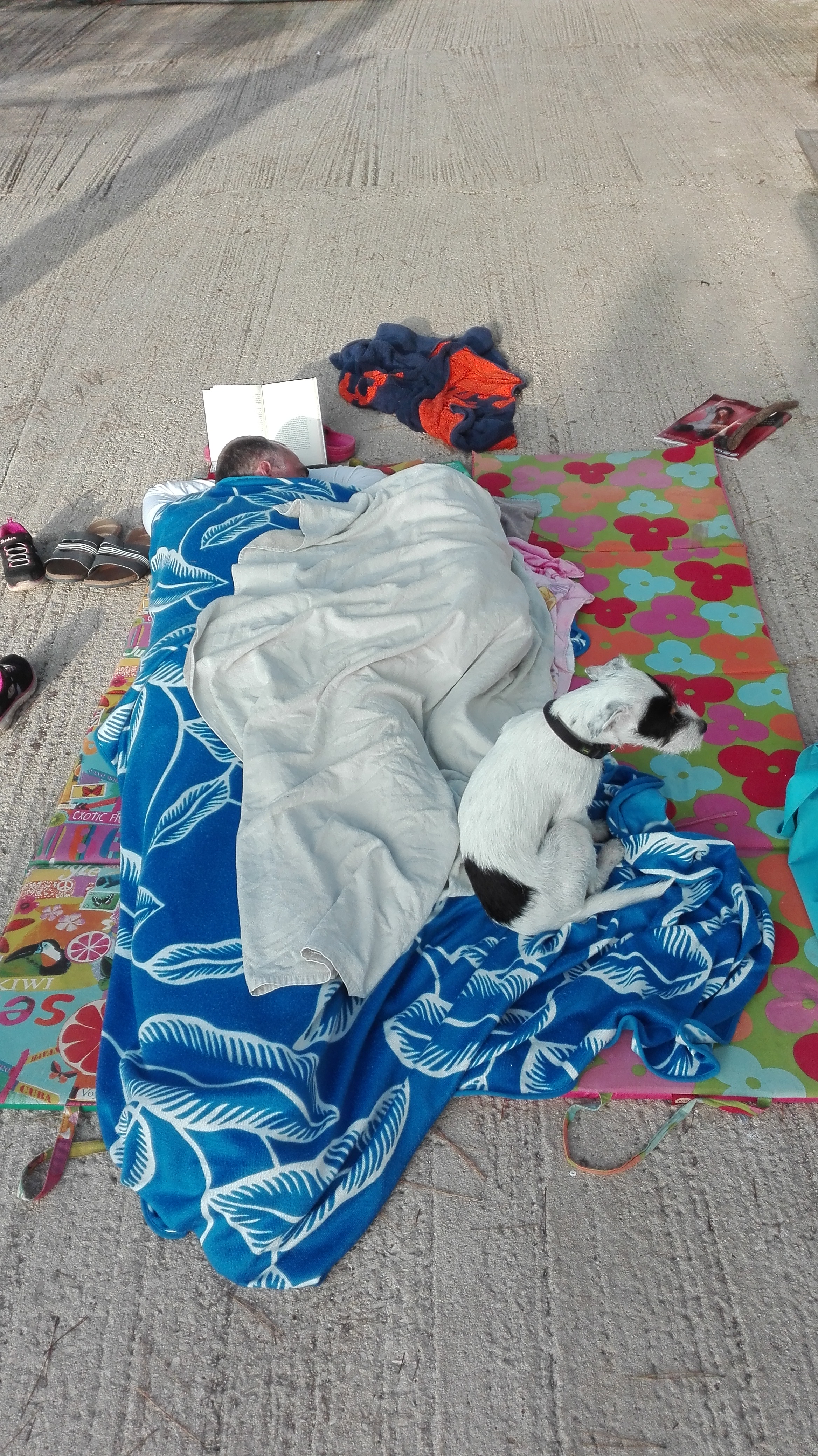 Posije sonce in vrnemo se v kamp – da se bomo sončili in kopali. Na šoping pa se vrnemo zvečer, saj so dnevi že nekoliko krajši. Oblečemo kopalke in se uležemo na sonce. Mine minuta, mineta dve in že počasi oblačimo majice, nato hlače, sledijo nogavice, pulover….Rok pojdi prosim po odejo v Olivo. In se pokrijemo. Najprej z eno odejo, potem še z eno brisačo, potem pa še z drugo in ljudje, ki hodijo mimo, nas imajo zagotovo za begunce, ki jih je naplavilo na plažo. Oni seveda v puhovkah, mi pa samo noske molimo ven iz odej. Še pes je zlezel med nas in se ga sploh ne vidi, le občasno malo zalaja, ko pride kdo mimo.