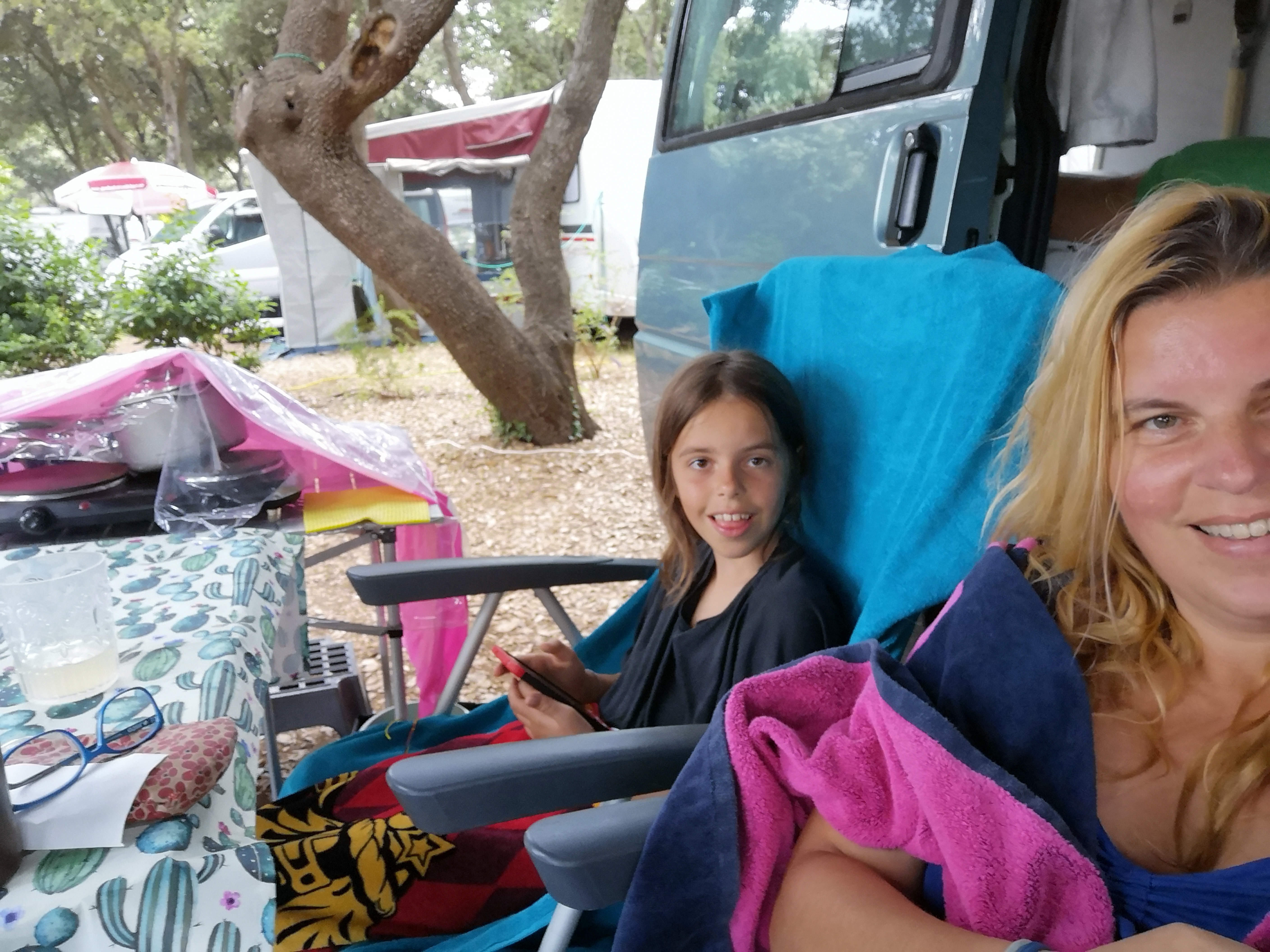 Potem pa je začelo deževati in stiskali smo se pod tendo in v Olivi. Kljub slabemu vremenu, so to najlepši občutki. Smo skupaj, se pogovarjamo, hecamo… res se imamo lepo.