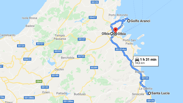 Golfo Aranci je turistični kraj, ki pa je znan tudi po trajektni luki. Samo mestece je dokaj prisrčno, predvsem nam je bilo všeč, da imajo na plaži postavljene zvočnike, ki predvajajo prijetno glasbo.