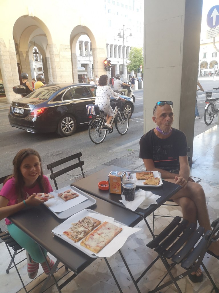 Pretreseni se odpravimo v center Livorna, avto parkiramo na glavni ulici, v upanju, da ravno pred Max Maro pa ne bodo vlamljali. Malo se sprehodimo, ogledamo center, pojemo pico na cesti, poiščemo bencinsko črpalko ter se odpeljemo v pristanišče.