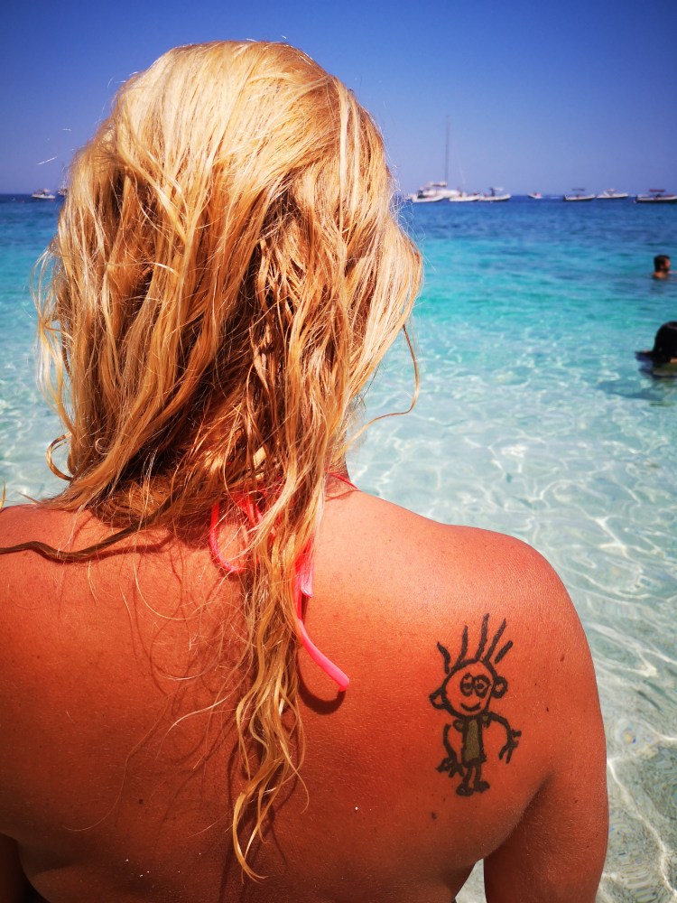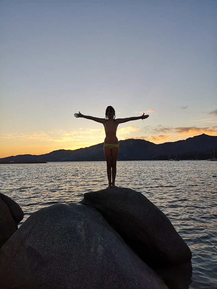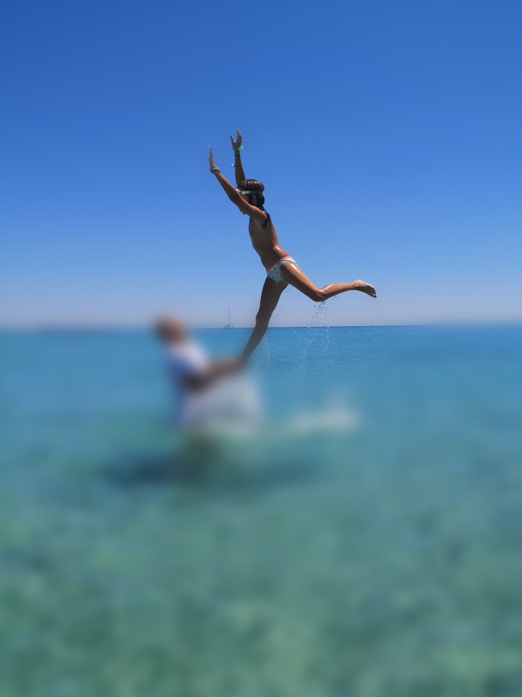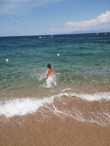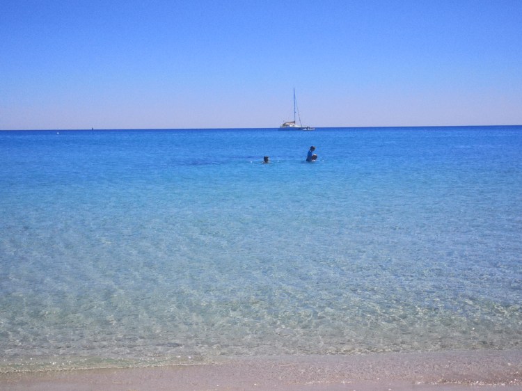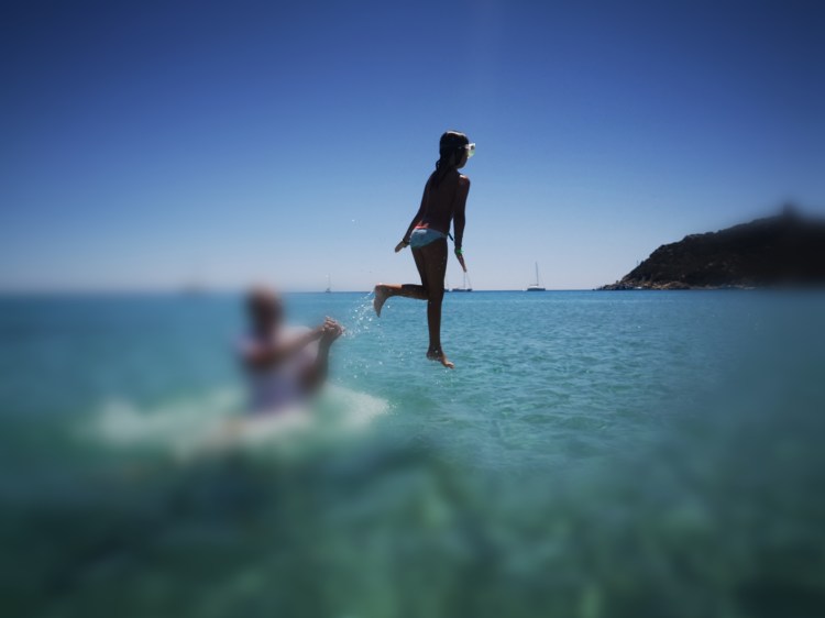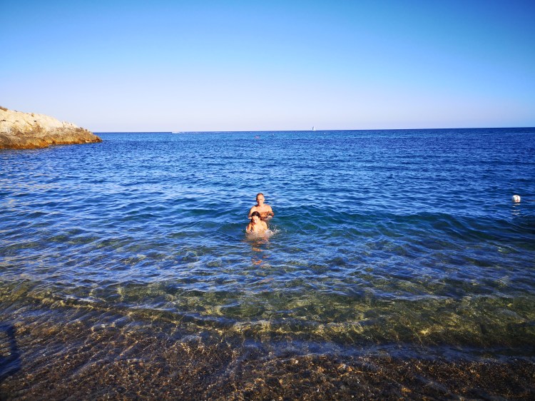 Plaža Porto Giuncu je sanjska. In ker smo bili med tednom, tudi ni bila nabito polna. Takih turkiznih barv, takega belega peska ne vidiš vsak dan. Skupaj s Tino in njenimi smo cel dan uživali v vodi, otroci so se igrali, Tinin mož je obe punci metal iz vode v zrak – nastale so čudovite fotografije. Res smo se imeli odlično. S Tino sva tudi probali obleke, ki so jih prodajali na plaži in se ob tem zelo nasmejali. Skratka, res dan, pol zabave. OK, otroci so sicer zaradi celodnevne izpostavljenosti soncu dobili blago obliko sončarice, ampak so preživeli.