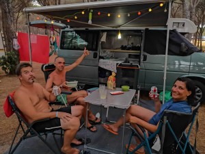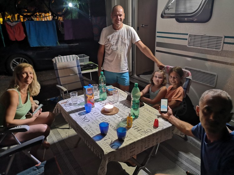 Petra in njeni pridejo že čez dan in skupaj smo že popoldne na plaži. Zvečer pa pred njihovo novo prikolico spijemo kak kozarček in klepetamo pozno v noč. Zelo veseli, da smo jih spet srečali. A mi našo pot prihodnje jutro spet nadaljujemo naprej.