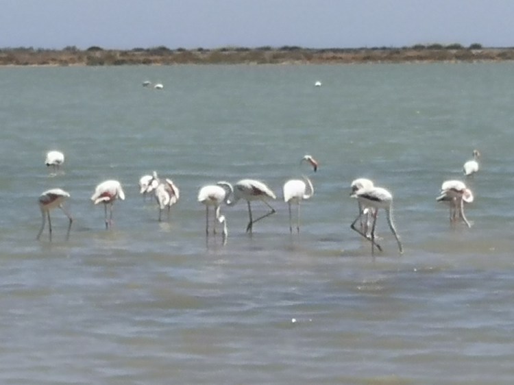 Rok iz obupa poišče sladoled (kar ni bilo tako lahko, saj je bil spet čas počitka), potem pa se odpeljemo do jezera, kjer sem prej videla množico flamingov. Čudovit prizor. Prvič smo jih videli v živo. Nekoliko smo bili le presenečeni, ker niso bili roza, temveč beli. Le pod perjem močno roza, kar se vidi, ko letijo. Je pa Sardinija polna flamingov, ker je zelo vodnata, je polno močvirij, kjer jih lahko vidite.