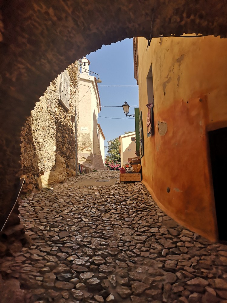 Odpeljemo se v hrib. Že od daleč zagledamo v hrib postavljeno vas Vilagrande Strisaili. Noro zanimiva vas, sredi ničesar, visoko v hribih, s čudovitim pogledom na morje v daljavi. Ker nekaj obnavljajo, smo prisiljeni zapeljati po obvozu znotraj vasi, ki je vključeval zelo ozko in zelo strmo ulico. Komaj smo jo speljali.