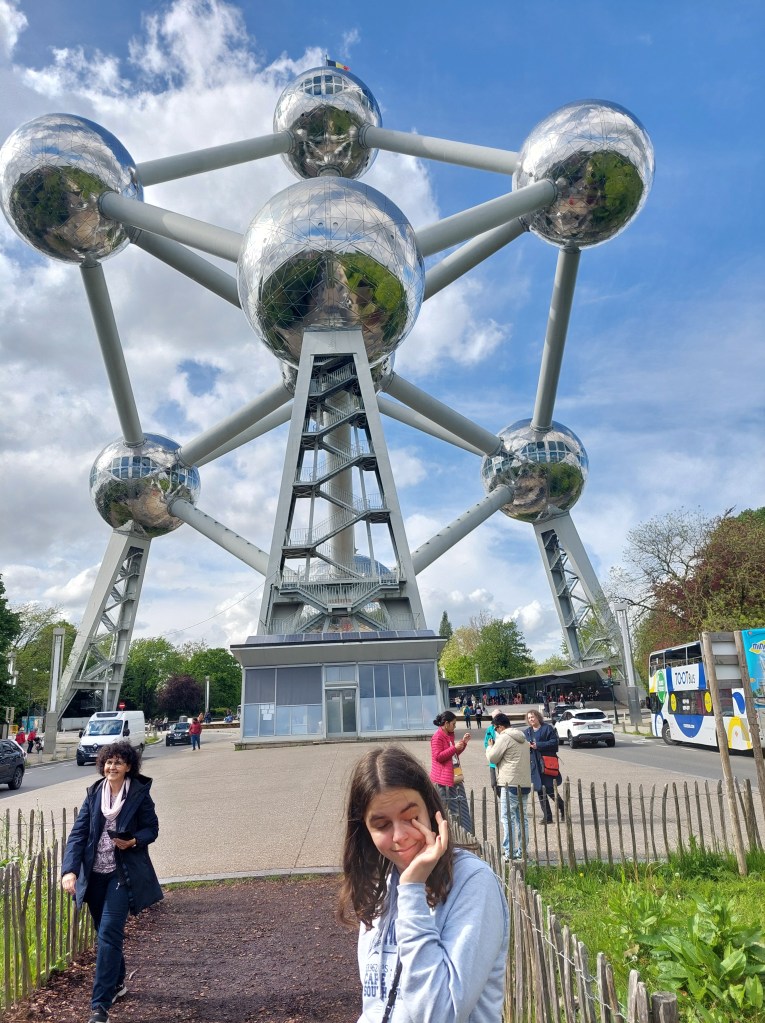 Zadovoljni, da smo si ogledali lepote Bruslja, smo se odpeljali še do Atomiuma… Rok in Ema sta se želela povzpeti, pa je bila kar gneča in sta obupala.