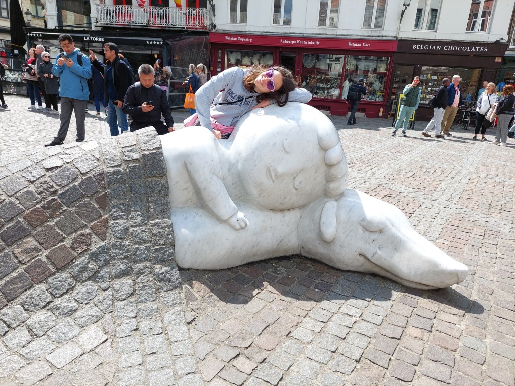 Parkirali smo ob morskem kanalu, tik ob gradu Het steen, ki velja za najstarejšo zgradbo v mestu. Od tam je le lučaj stran trg, kjer je znameniti spomenik junaku Brabu, ki prikazuje, kako meče velikanovo roko v morje.