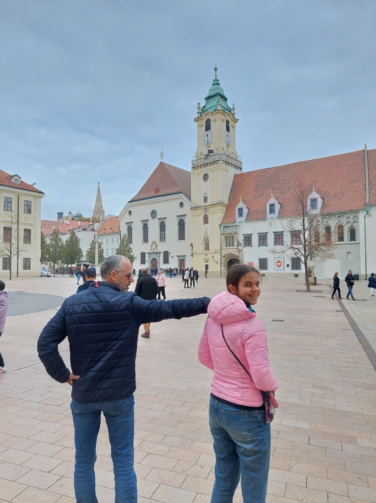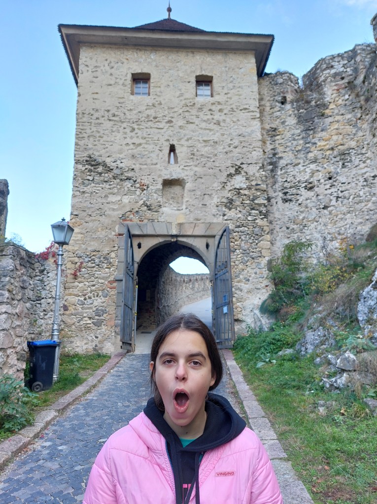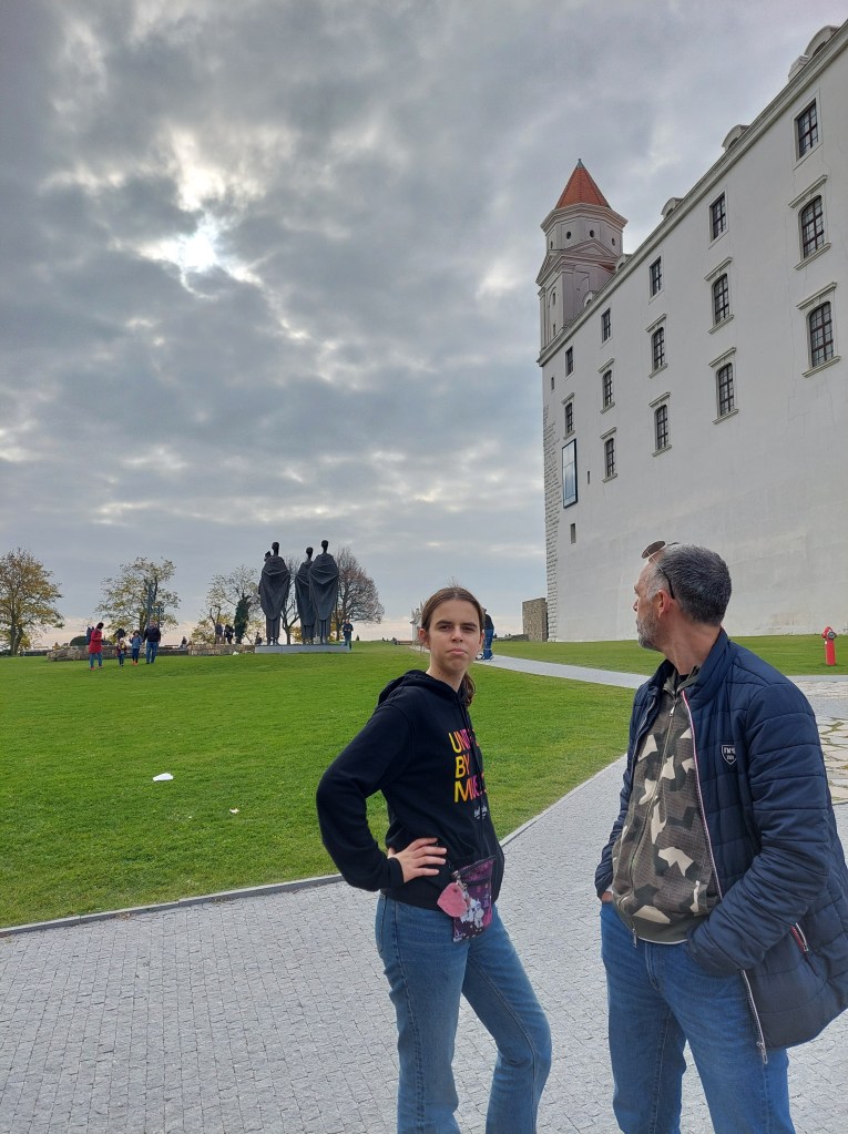Sprehodimo se po mestu, po trgovinicah, mimo znamenitega kipa delavca, pa mestnih vrat, glavnega trga in povzpnemo se na grad. Ema je bila naša vodička, saj je bila nedolgo nazaj s šolo v Bratislavi. Grad je res lep, predvsem vrtovi in park okoli njega, pa razgled na celo mesto.