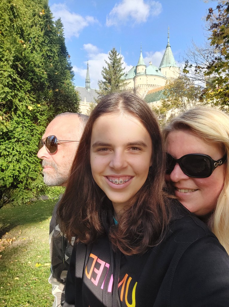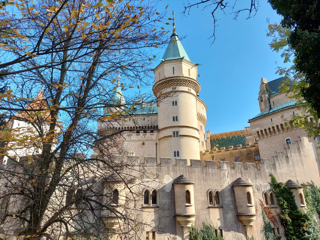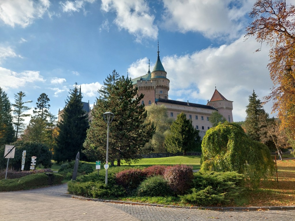Prečudovita cesta nas pripelje do gradu Bojanice, v vasi najdemo brezplačno parkirišče in se napotimo proti gradu, ki je res pravljične zunanjosti. Ponovno v grad ne vstopimo, ker je bil naslednji ogled šele čez eno uro in vstopnice niso bile najbolj poceni. Se pa sprehodimo okoli celega gradu po čudovitem parku. K razpoloženju je prispevala tudi flavtistka, ki je igrala sredi parka.