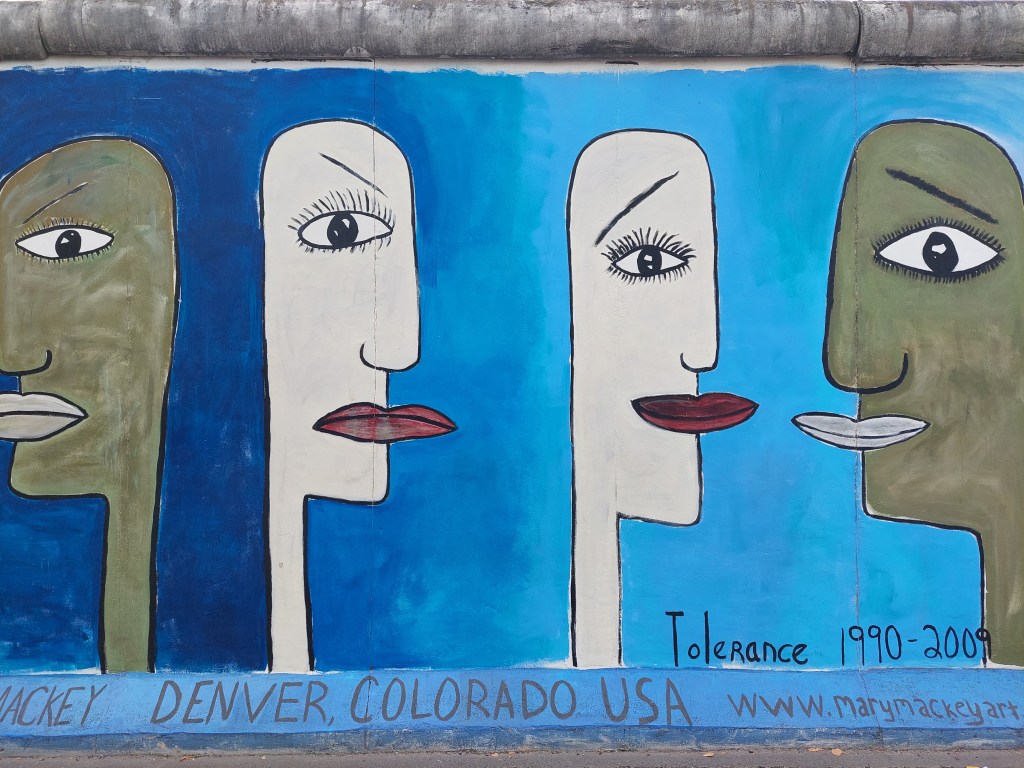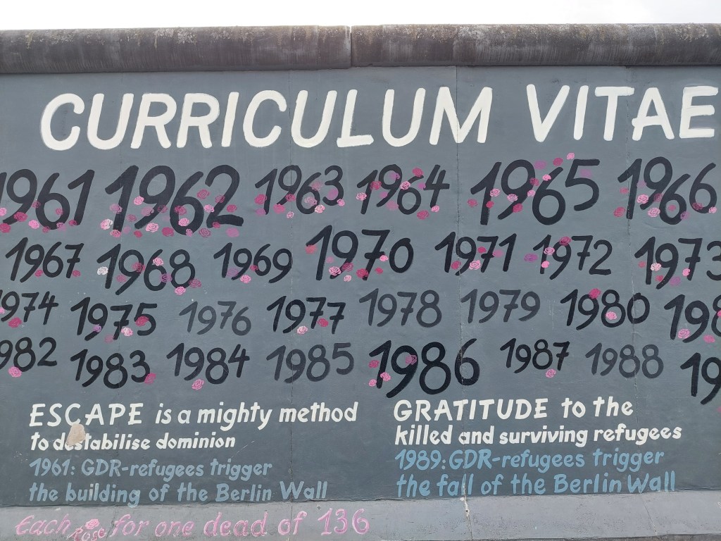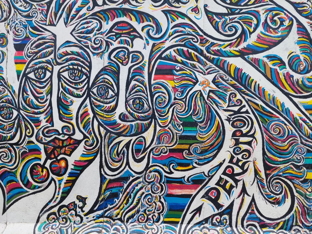 Z zadnjimi močmi se z busom odpeljemo mimo Opere, otoka muzejev, TV stolpa do East side gallery – galerije umetnosti poslikav berlinskega zidu (iz leta 1990). Zelo lepo in zanimivo.