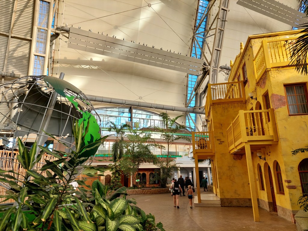 To je velik hangar, kjer so včasih izdelovali cepeline, danes pa je to bazenski kompleks, s tobogani, hoteli in čisto pravim tropskim gozdom (flamingi, kače, papige,…in seveda različne rastline).