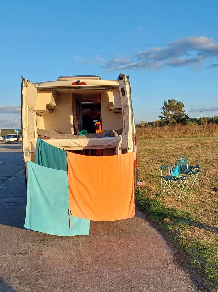 Prvotni načrt je bil, da bi spali v kampu, pa smo zagledali veliko parkirišče, ki je bilo namenjeno avtodomom. Sicer brez oskrbe, a saj imamo vse, tudi sončne celice….smo si mislili…