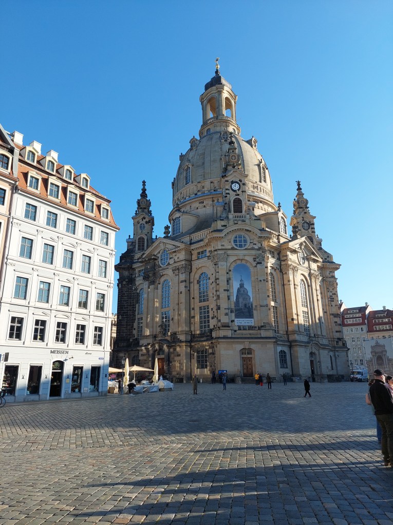 Ogledali smo si znamenito cerkev Frauenkirche, ki je bila porušena ob koncu 2. sv. Vojne. Dresden je nemško mesto, ki je bilo najbolj zbombardirano s strani zaveznikov. Naslednji je bil znameniti zid vseh princev – Fürstenzug. Nato njihov grad, Zwinger (baročna zgradba, v kateri je muzej), Semperopero… Še skok v novejši del, malo šopinga, pa po hrano…