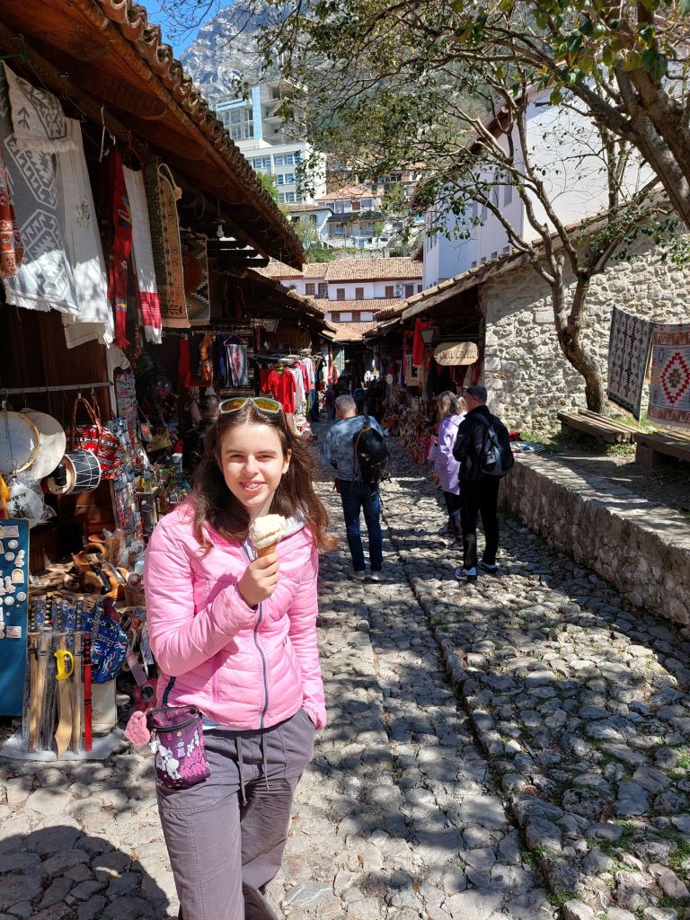 Sledil je glavni, ogromni trg s Skenderbegovim kipom, opero in lepo staro đamijo. V Tiranskem gradu, ki je preurejen v odprto kuhinjo, smo se s skupino razšli in z Emo sva odšli v Toptani center na kosilo. Zadnji sladoled sva pojedli v mirnem parku Evrope in že smo se zadnjič vkrcali na bus in odpeljali na letališče.