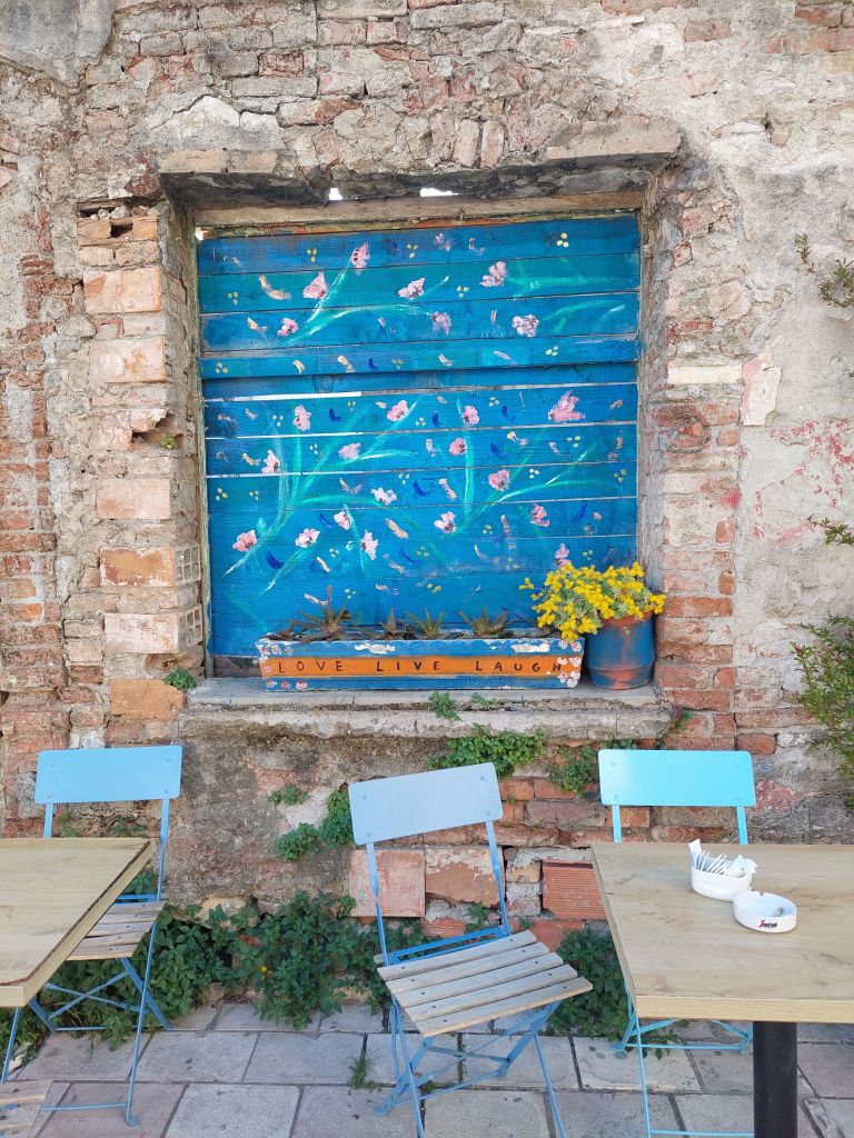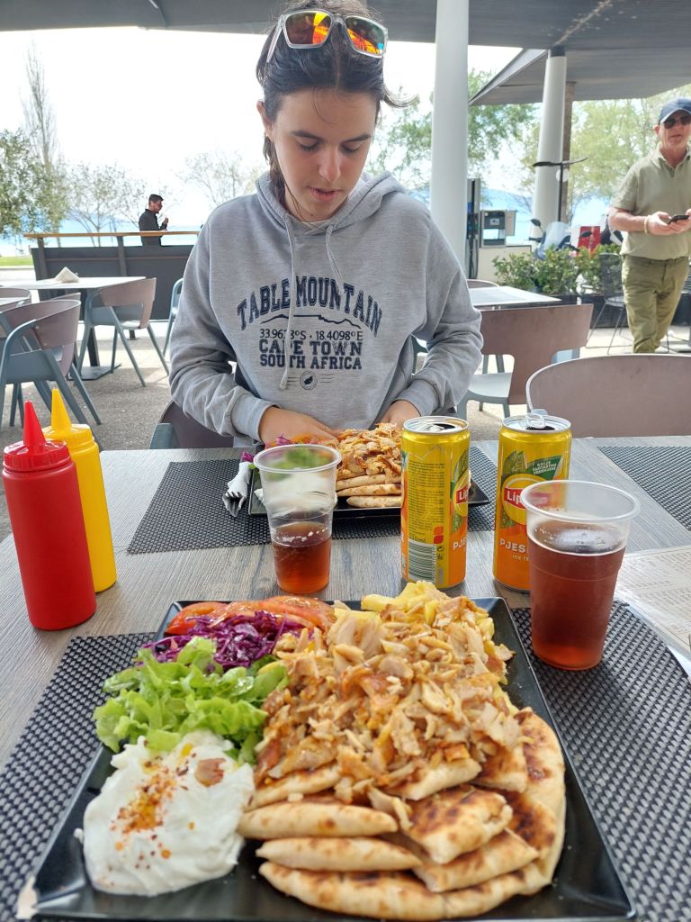Z Emo sva šli na kosilo v grško restavracijo na giros, saj so bile druge opcije le še pice. Kot je značilno za agencijska potovanja, sploh sindikalna, smo imeli spet nekoliko (pre)več prostega časa. Preveč zato, ker tam ni bilo nič za počet ali pa kot bi ga midve potrebovali. Zato sva se nekoliko vlekli gor in dol po promenadi in ko je malo pojenjal veter, sva se na klopci nastavili sončku.