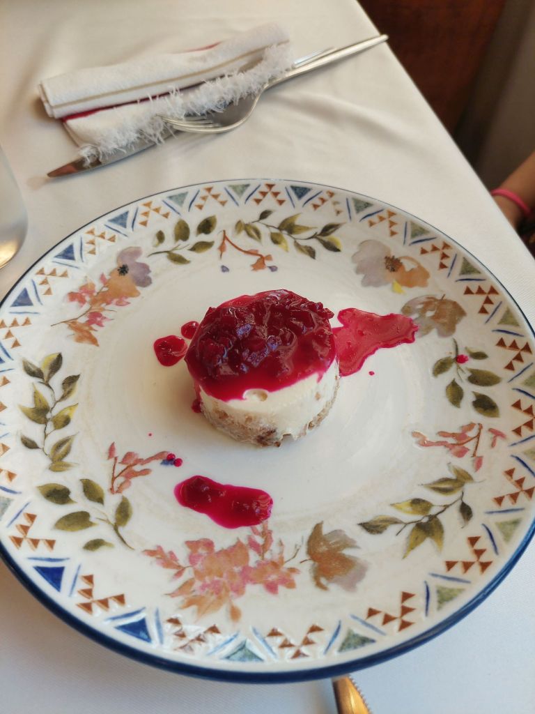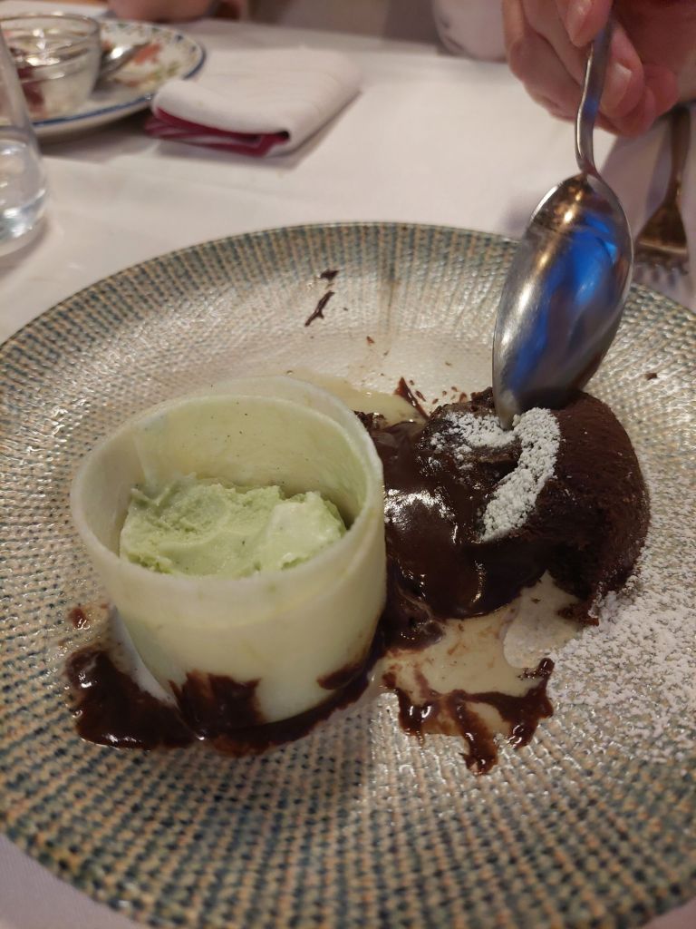 Večerja je bila v stilu »kako hitro lahko gostje pridejo, pojedo in gredo«. Še preden smo namreč uspeli pojesti prvo jed, so že vzeli krožnike in dali naslednje. Gospodu poleg naju so zamenjali krožnik, ko je imel hrano še na vilici. Smo se kar dobro nasmejali.