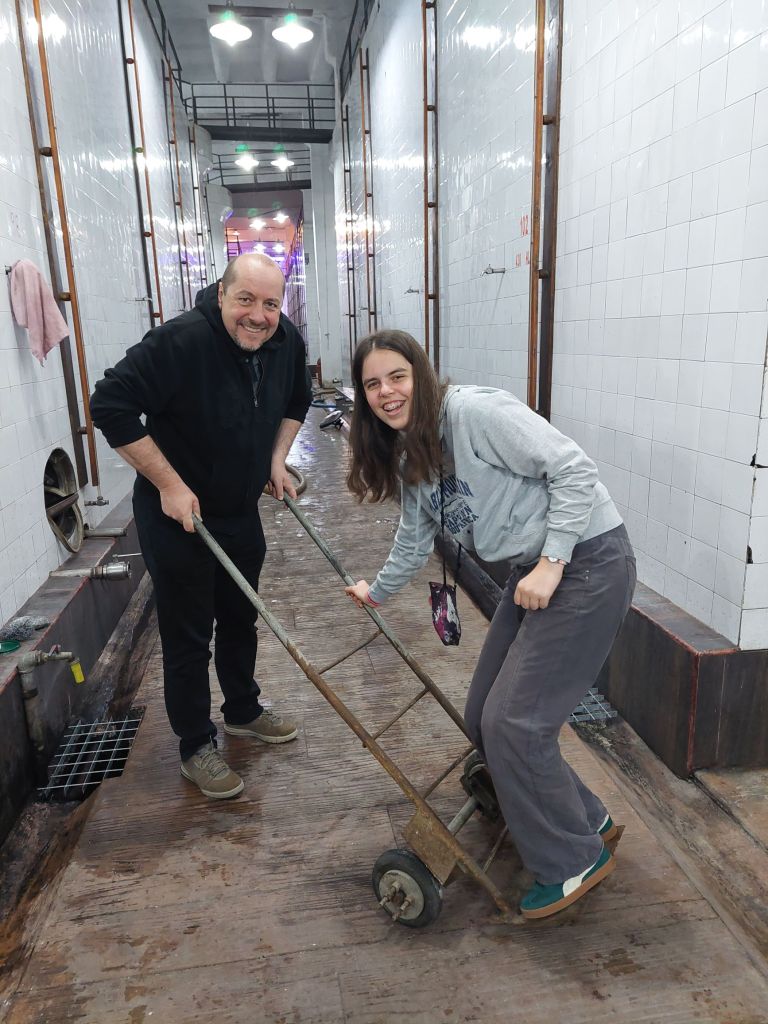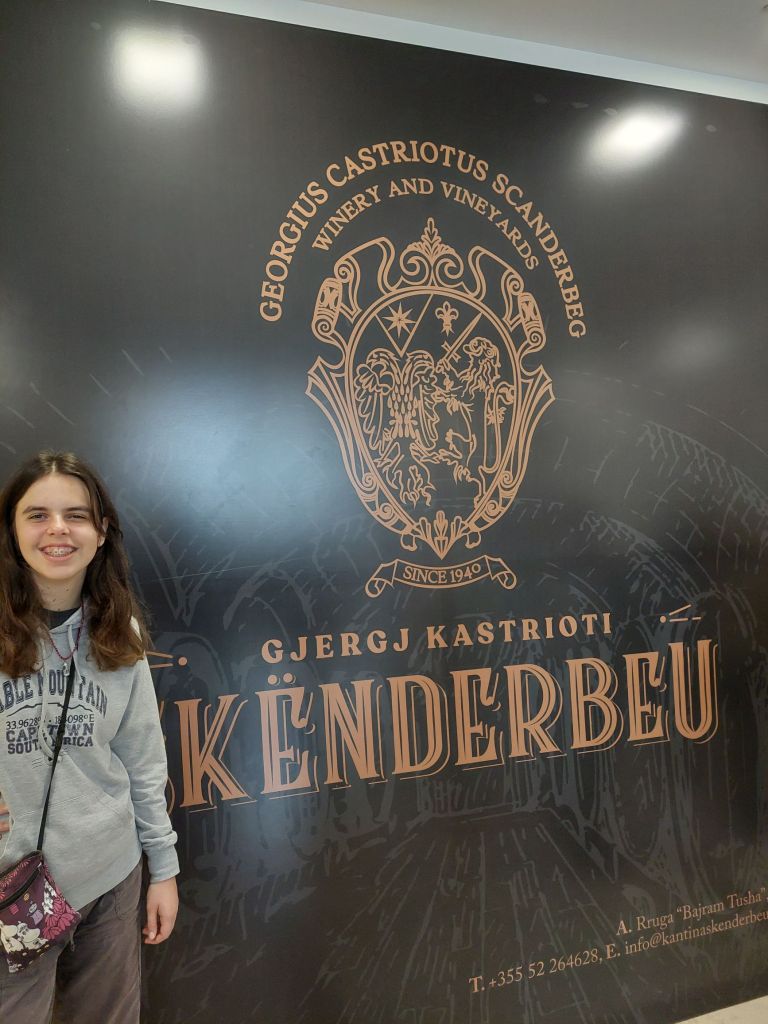 Spakirali sva kovčke in z busom smo se odpeljali v destilarno Skenderbega. Ogledali smo si proizvodnjo in sledila je degustacija vin, konjakov, aperitivov… Poizkusili sva pomarančni alkohol (Ema je le pomočila jezik vanj) in se obe strinjali, da je bil tako močen, kot če bi pil aceton. Ostali so ob prigrizku uživali v degustaciji, midve sva si okus popravili z jabolkom, potresenim s cimetom. Večina jih je kupila še steklenico ali dve za domov.