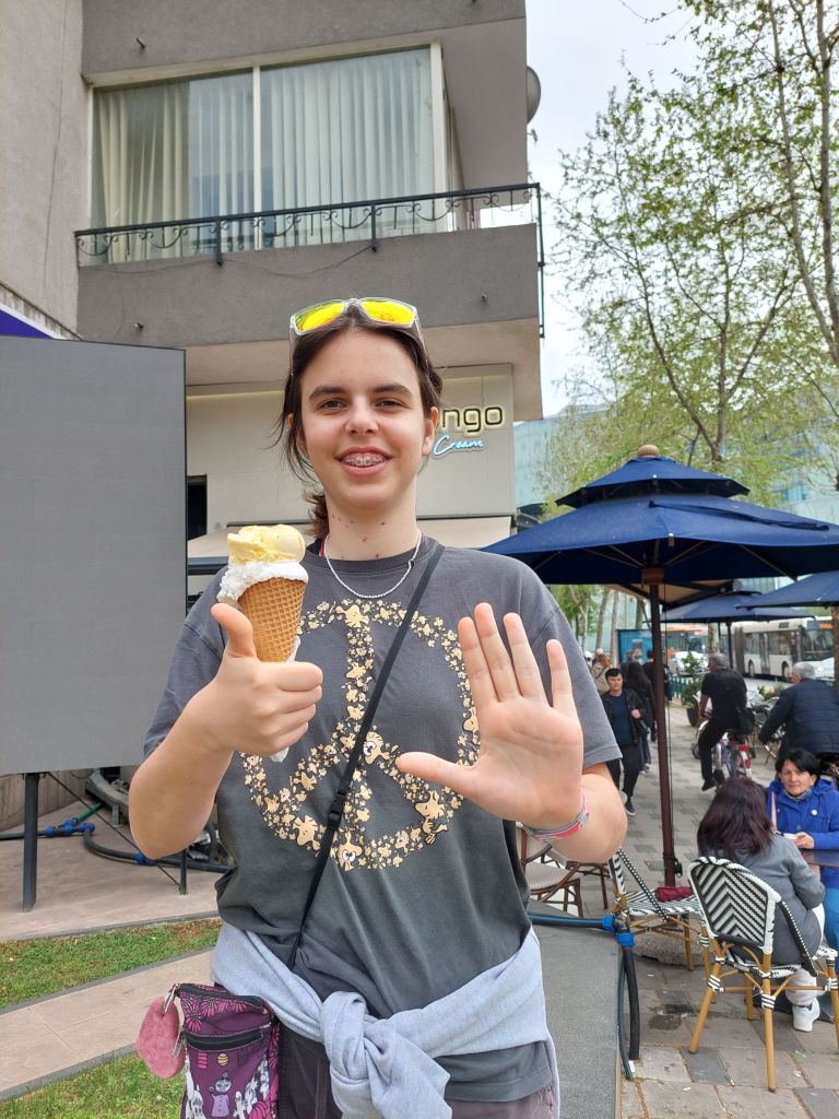 Z Emo sva se nato sprehodili po mestu, kupili znamke na pošti (razglednice nama je dal že moj oči – sva jih veselo ponovno uporabili. Verjetno so bile stare približno toliko kot jaz.) in šli na kavo ter obvezen sladoled. Machiato + kepica sladoleda (velika) + sladki kornet = 1,9 eur.